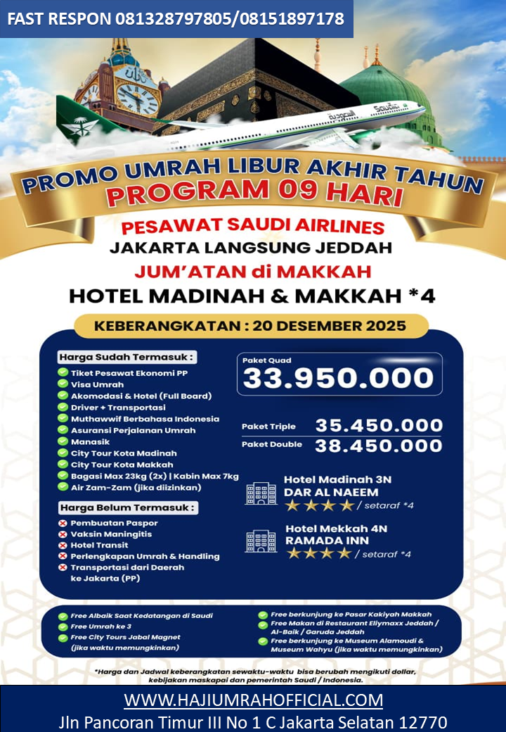 Perjalanan umroh bersama Lantama Wisata penuh berkah. Petugas ramah, fasilitas hotel nyaman, dan semua kebutuhan jamaah terpenuhi dengan baik. Sangat profesional serta terpercaya